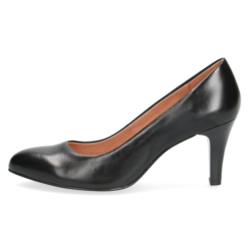 Step into timeless sophistication with our Caprice Black Leather Pump Heels. These classic black pumps are a versatile addition to any wardrobe, perfect for professional settings, evening events, or any occasion requiring a touch of refined grace in Nairobi. Crafted with high-quality leather, these shoes are designed to seamlessly combine fashionable design with superior comfort. Like a second skin, they gently caress your foot, and thanks to their excellent breathability, the foot climate is also optimally supported.
