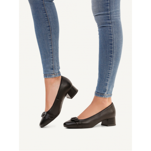 Adaptable Comfort & Elegant Style: Caprice Black Leather Pump Heels